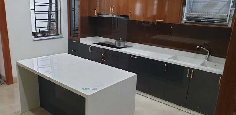Mẫu đá ốp bếp Himacs màu trắng sẽ giúp căn phòng bếp của các căn hộ chung cư, nhà phố, biệt thự trở nên sang trọng hơn và có thêm nhiều tiện nghi.